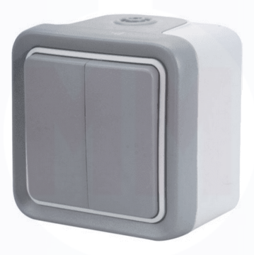 Выключатель-переключатель двухклавишный Legrand Plexo 10A, IP55 (цвет серый) 069715
